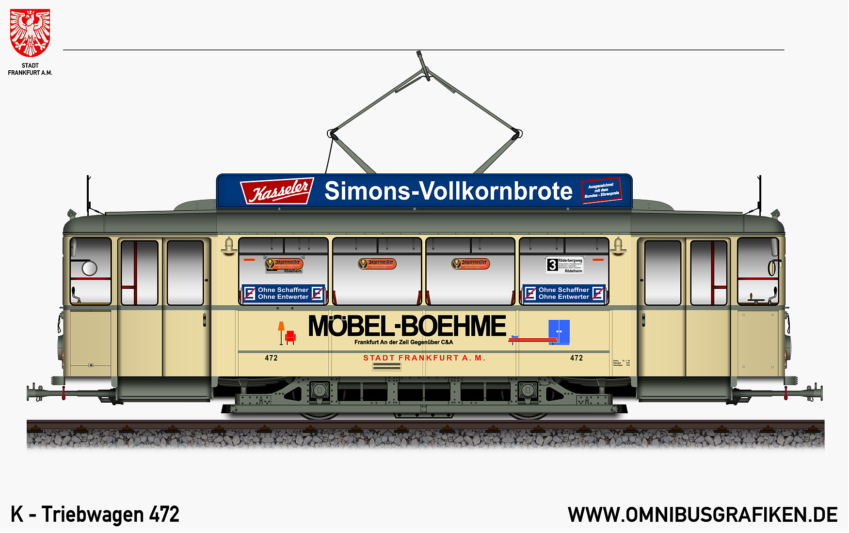 zweiachsigen Straßenbahnfahrzeuge, die in Frankfurt