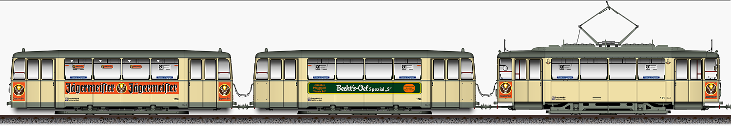 Beiwagen 1728 und 1730, Ansicht von 1977 |
