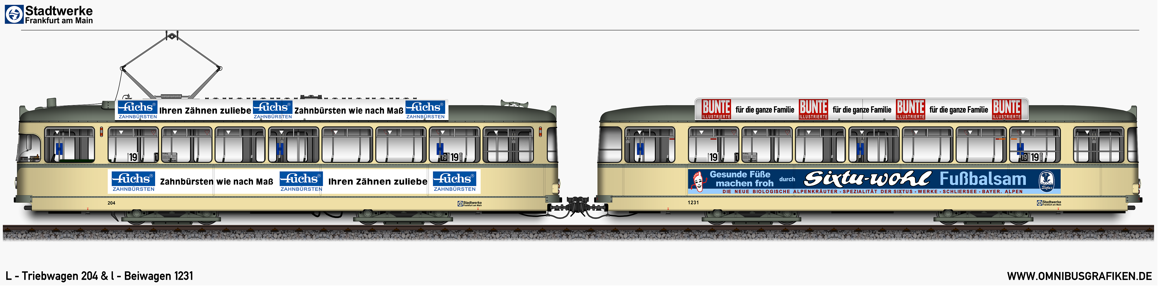 L - Triebwagen 204 und l - Beiwagen 1217,