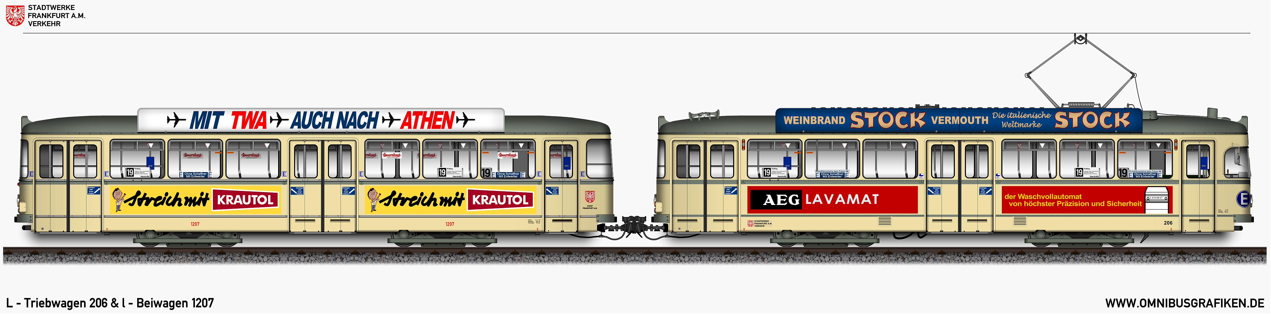 | L - Triebwagen 206 und l - Beiwagen 1207, Ansichten von 1970 | |