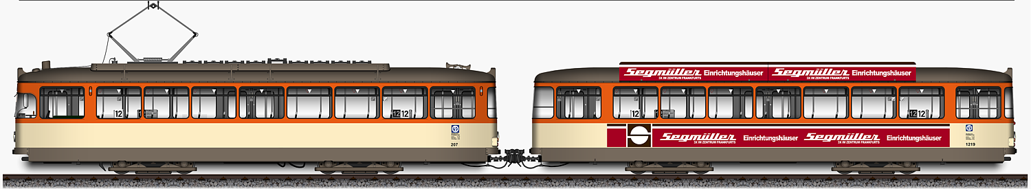 | Triebwagen 203 und Beiwagen 1219, Ansichten von 1975 | ||
