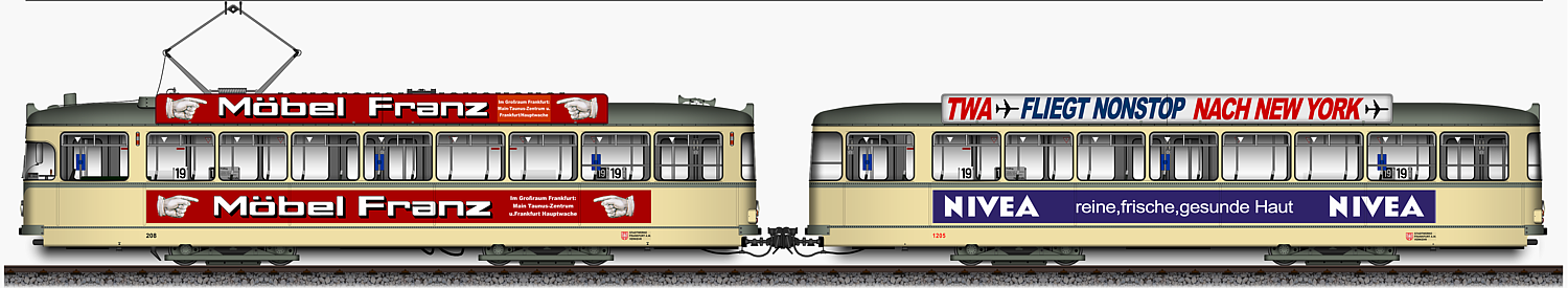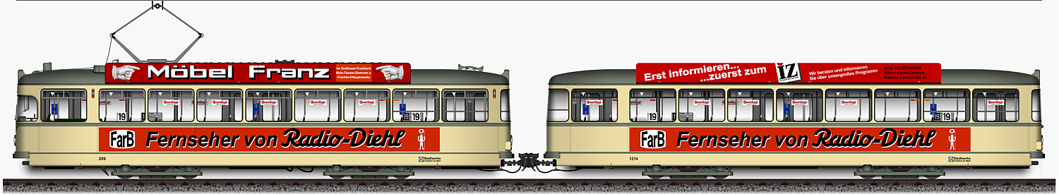 | Lv - Triebwagen 209 und lv - Beiwagen 1207, Ansichten von 1965 Taunusbahn Zug | |