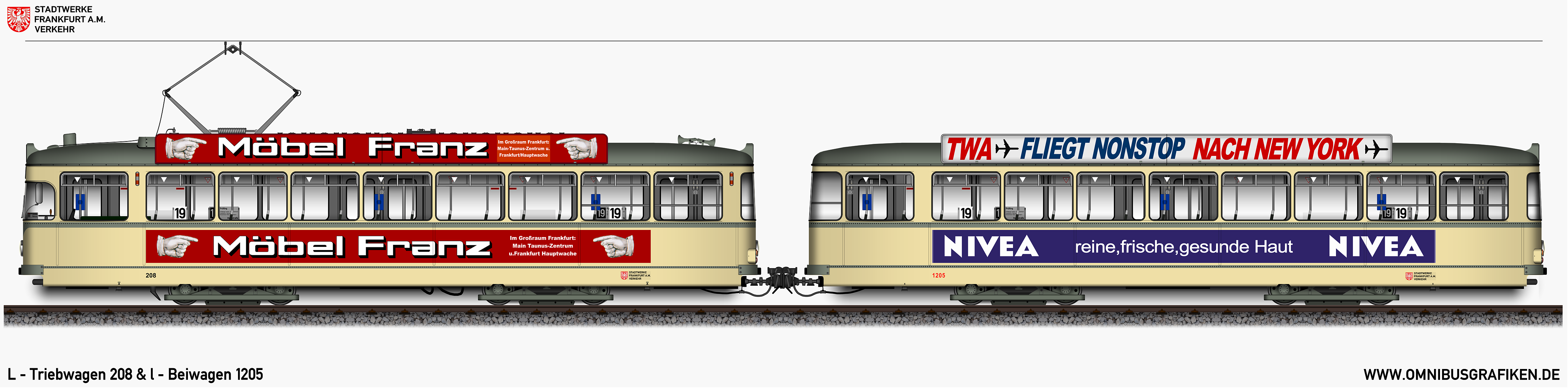 | L - Triebwagen 208 und l - Beiwagen 1205, Ansichten von 1970 | |