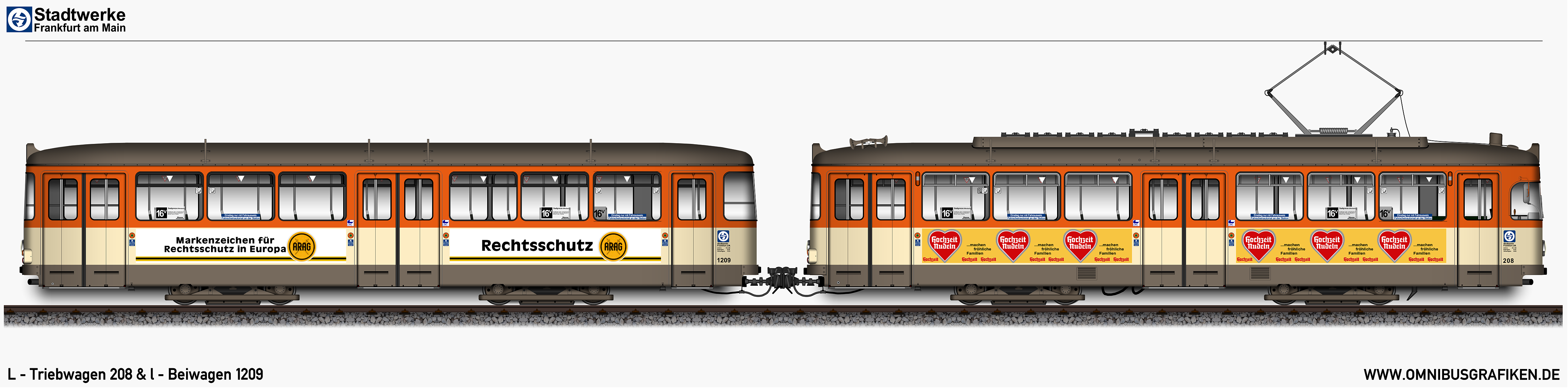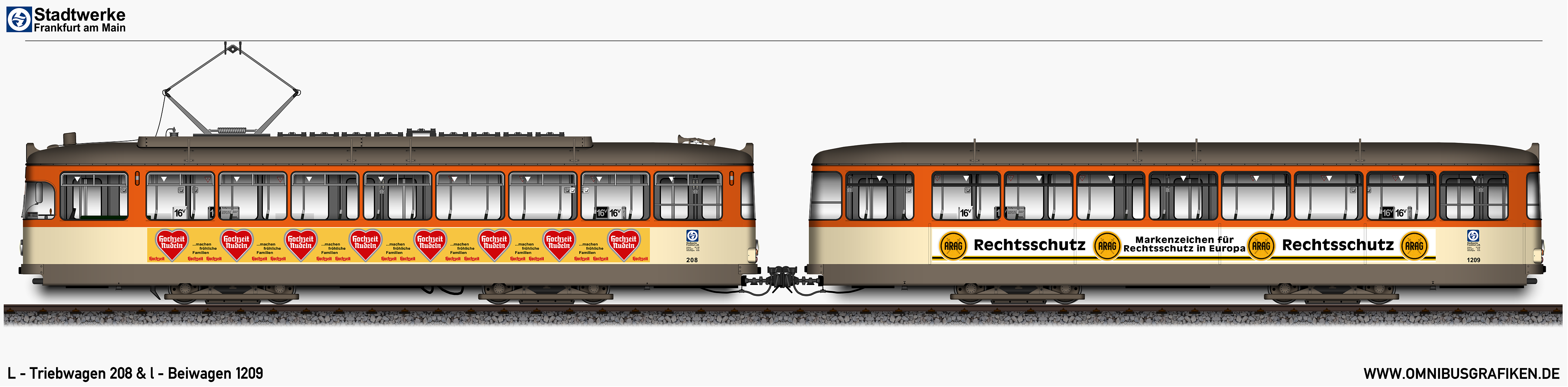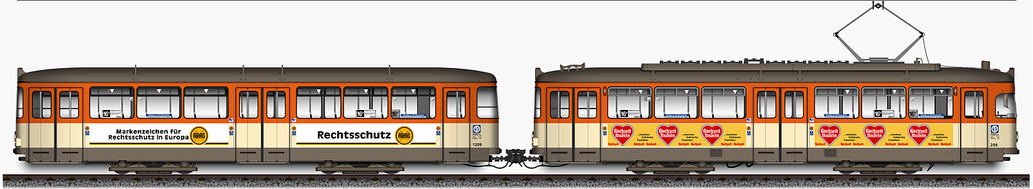 L - Triebwagen 208 und l - Beiwagen 1209,