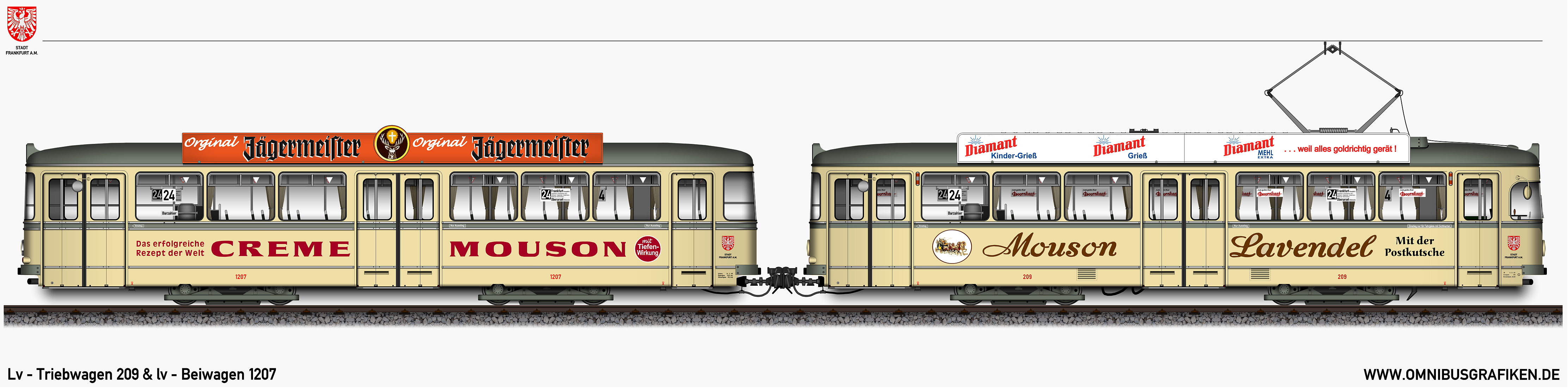 Lv - Triebwagen 216 und lv - Beiwagen 1216,