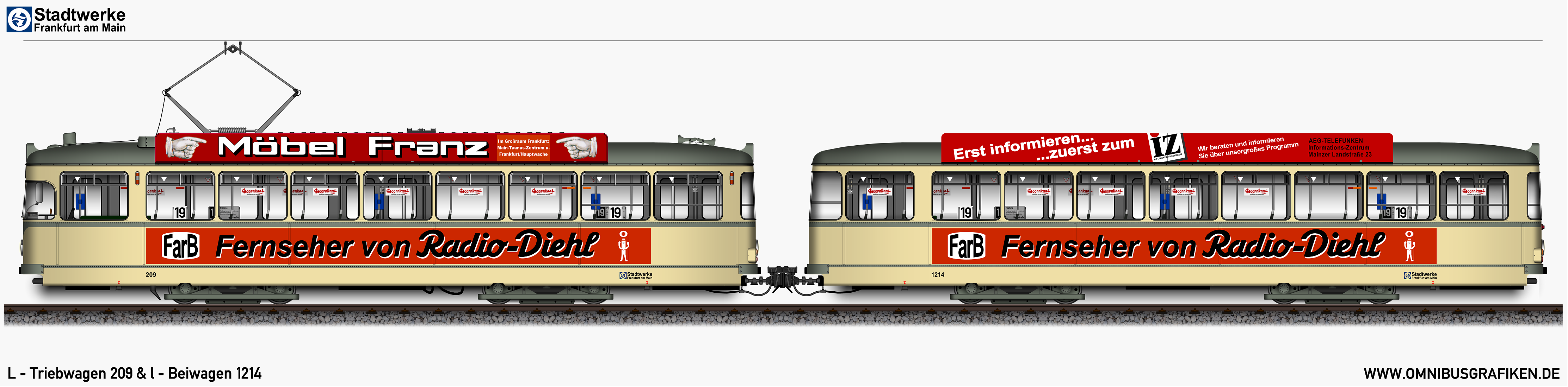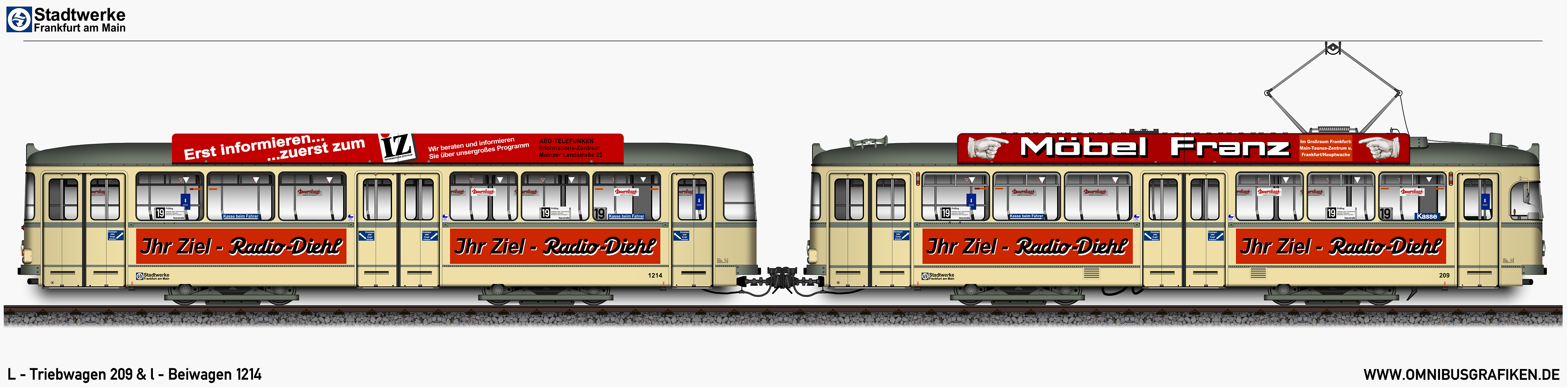 | L - Triebwagen 209 und l - Beiwagen 1214, Ansichten von 1972 | |