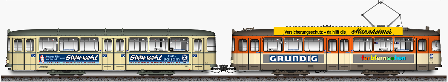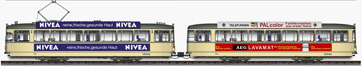 L - Triebwagen 229 und l - Beiwagen 1211,
