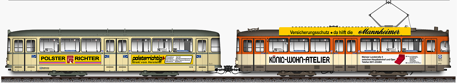 | Lv - Triebwagen 216 und lv - Beiwagen 1215, Ansichten von 1963 Taunusbahn Zug | ||