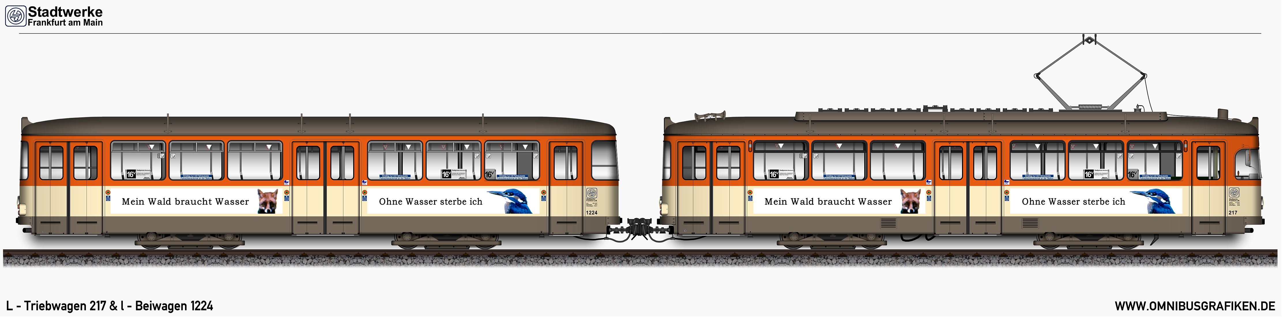 | L - Triebwagen 217 und l - Beiwagen 1224, Ansichten von 1994 | |