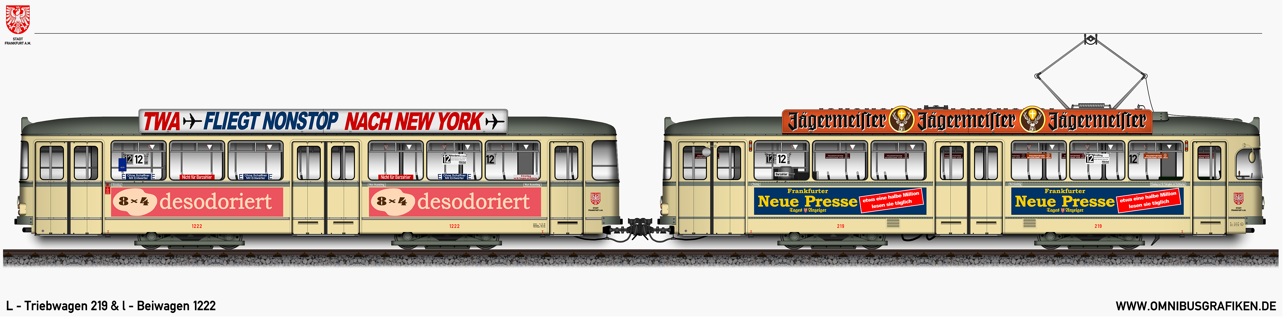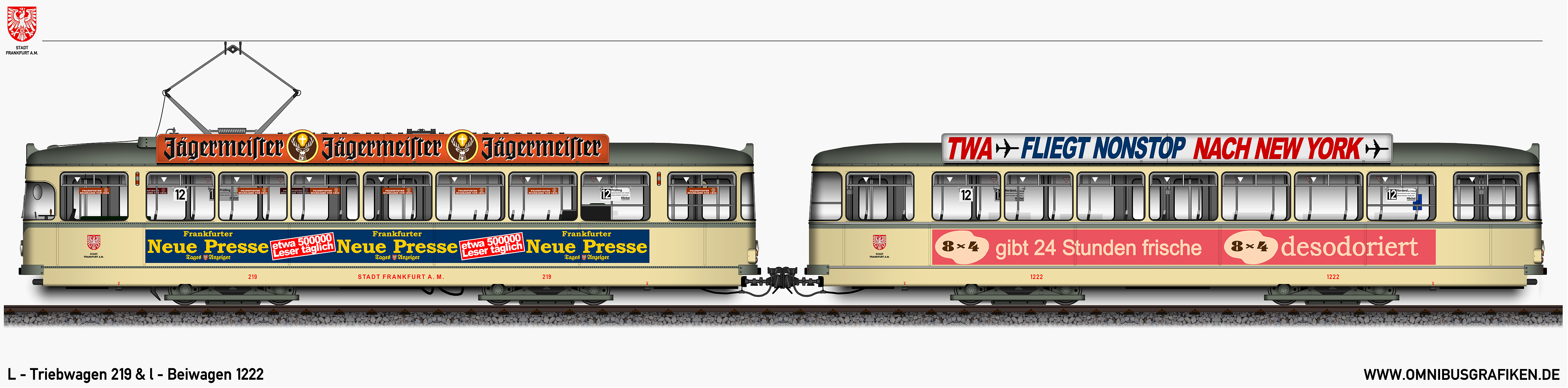 L - Triebwagen 219 und l - Beiwagen 1222,