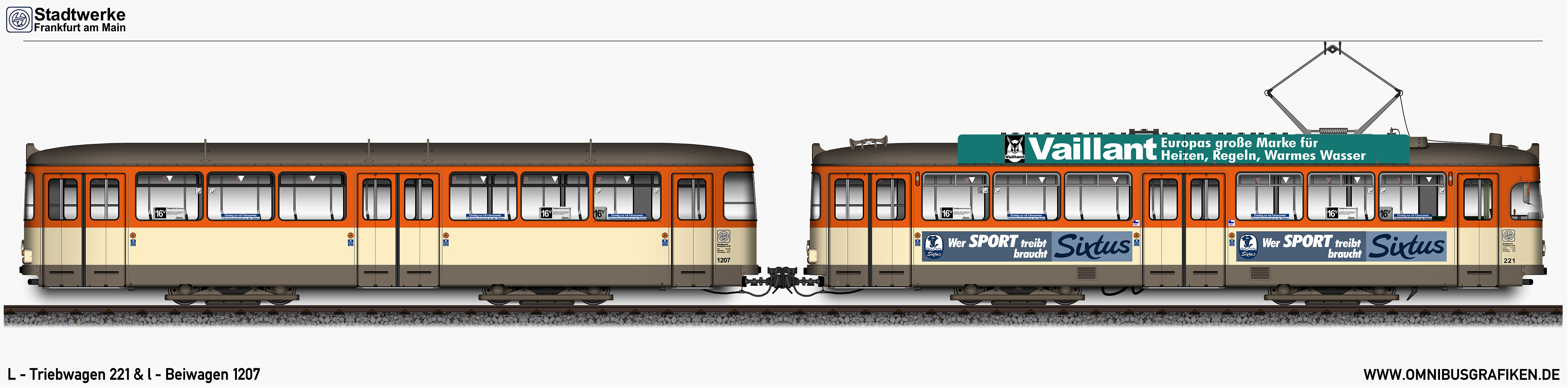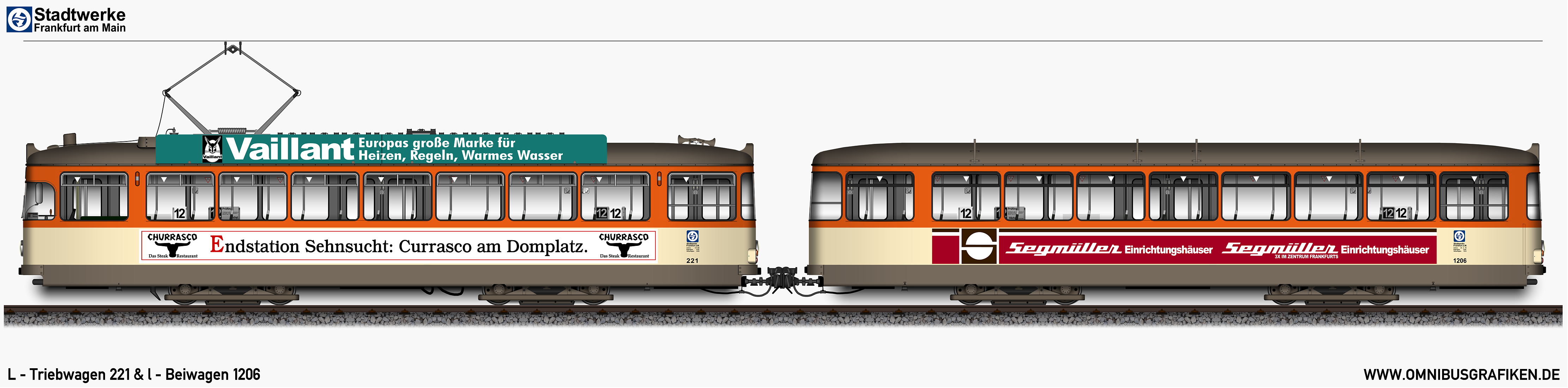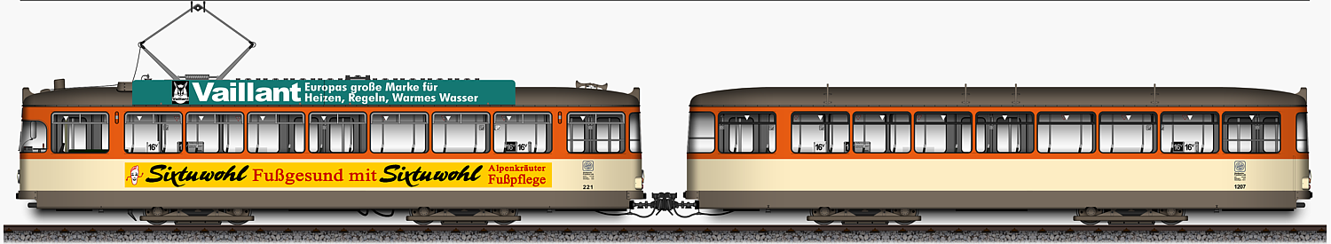 L - Triebwagen 221 und l - Beiwagen 1206,
