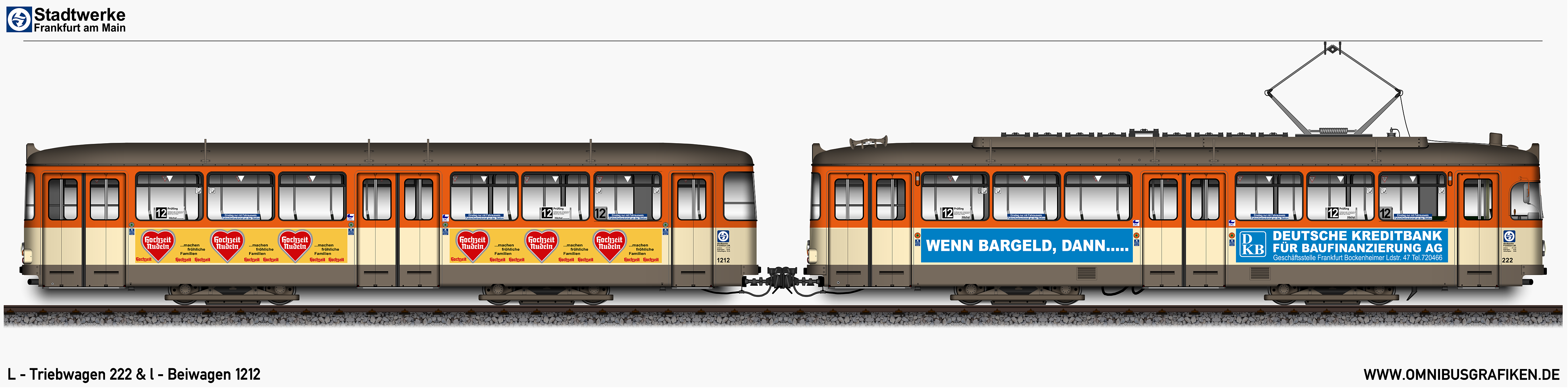 L - Triebwagen 222 und l - Beiwagen 1217,