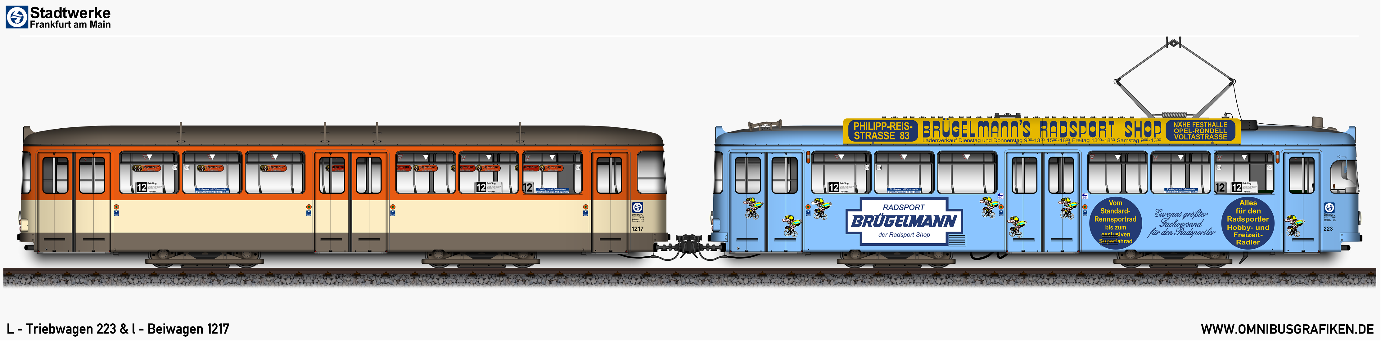 | L - Triebwagen 223 und l - Beiwagen 1217, Ansichten von 1985 | |