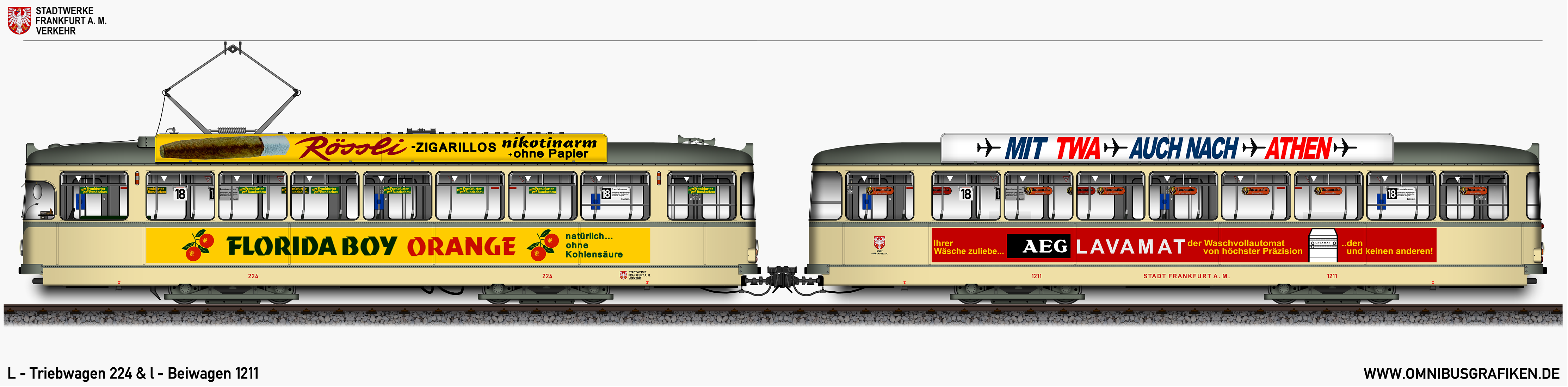 | L - Triebwagen 224 und l - Beiwagen 1206, Ansichten von 1969 | ||