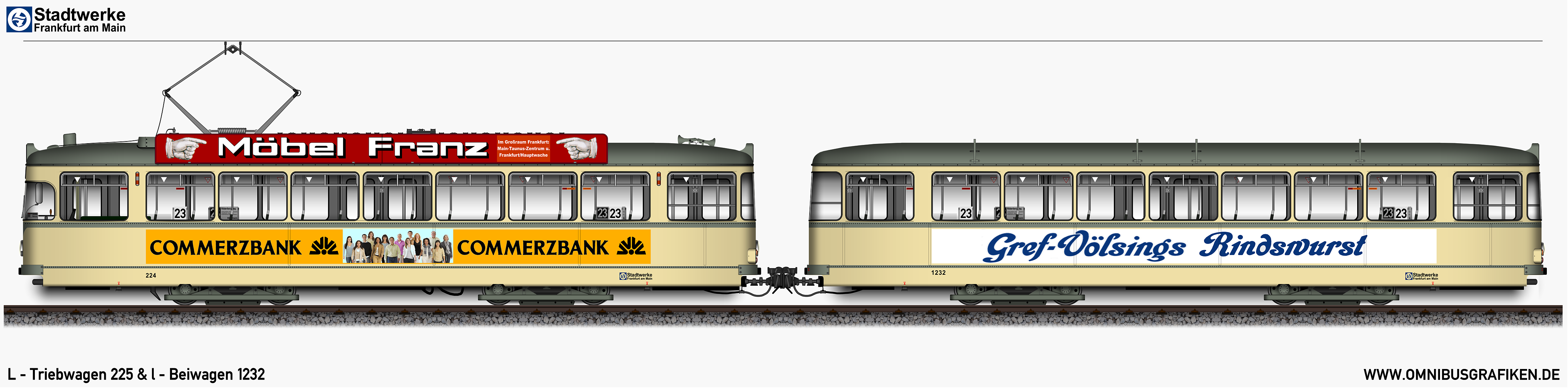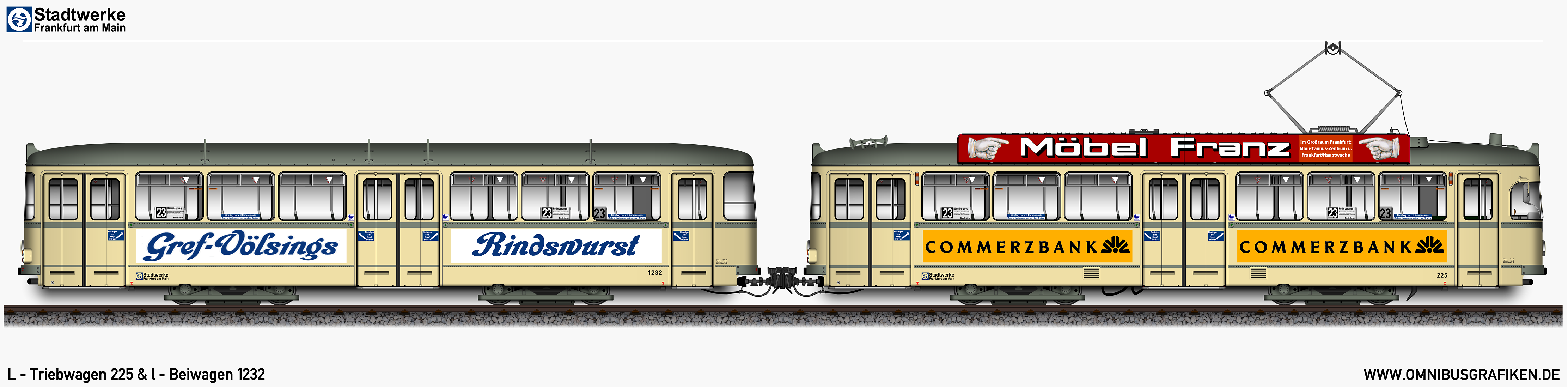 | L - Triebwagen 225 und l - Beiwagen 1232, Ansichten von 1977 | |