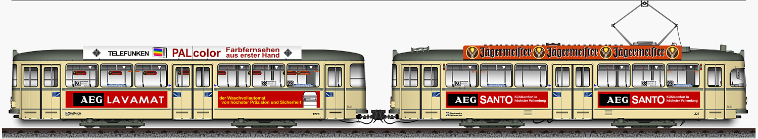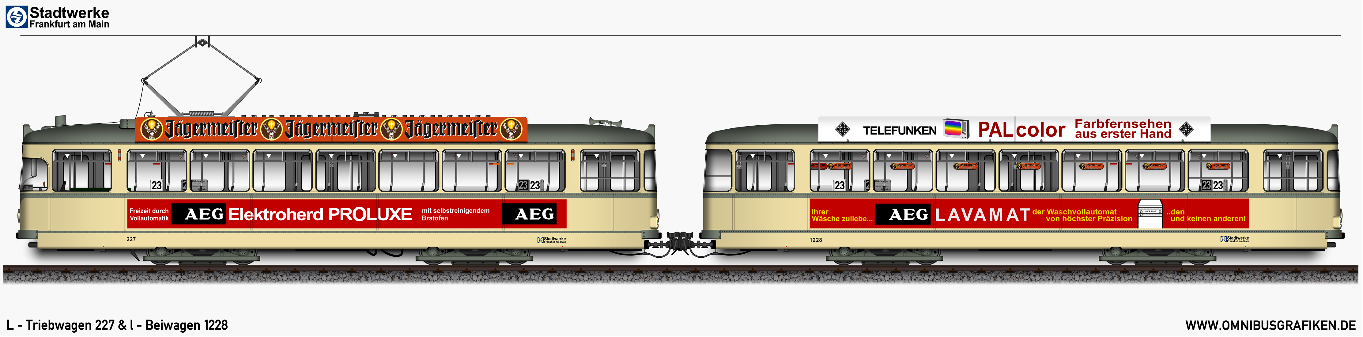 L - Triebwagen 227 und l - Beiwagen 1228,