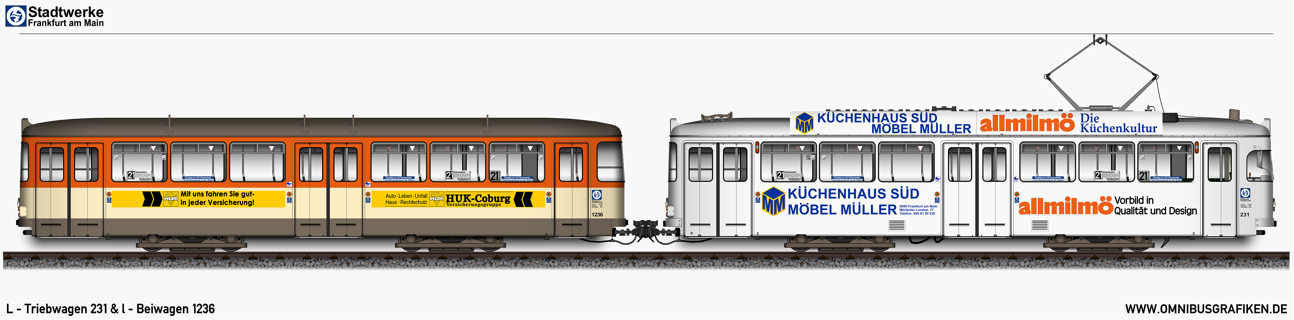 | L - Triebwagen 231 und l - Beiwagen 1236, Ansichten von 1985 | |