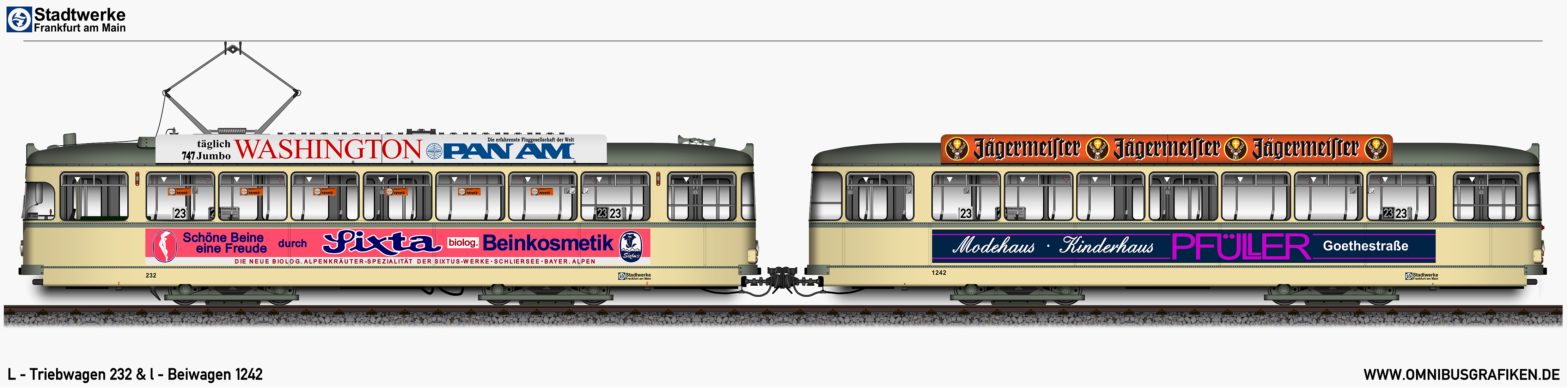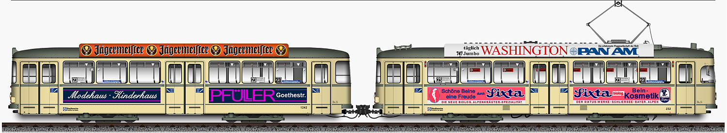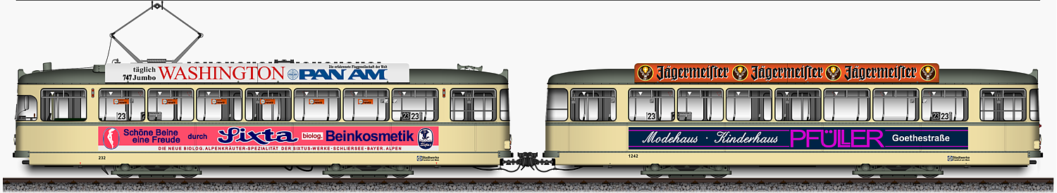 | L - Triebwagen 232 und l - Beiwagen 1242, Ansichten von 1978 | |