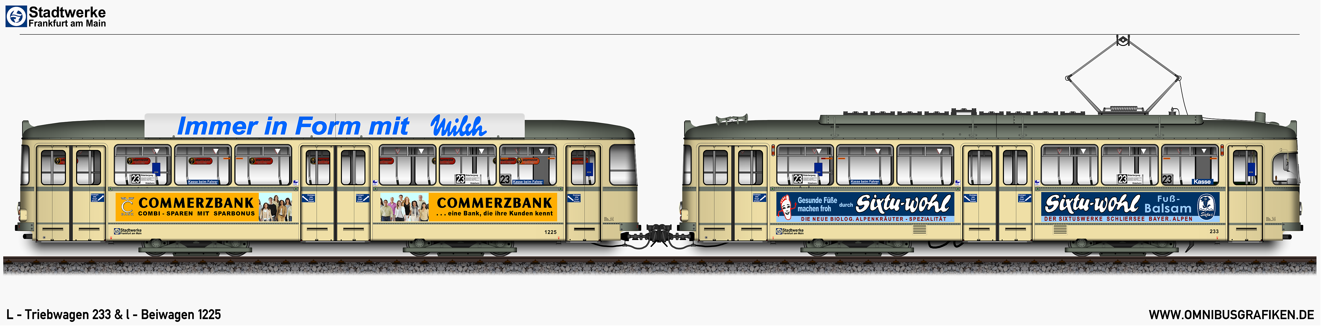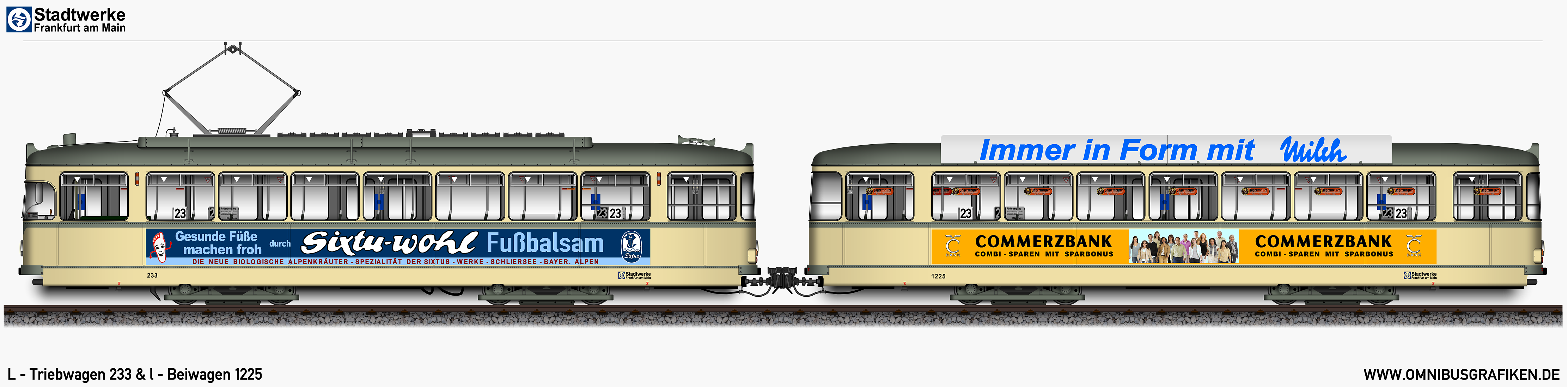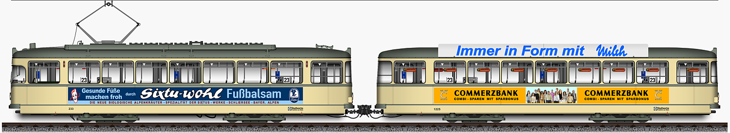 | L - Triebwagen 233 und l - Beiwagen 1225, Ansichten von 1972 | |