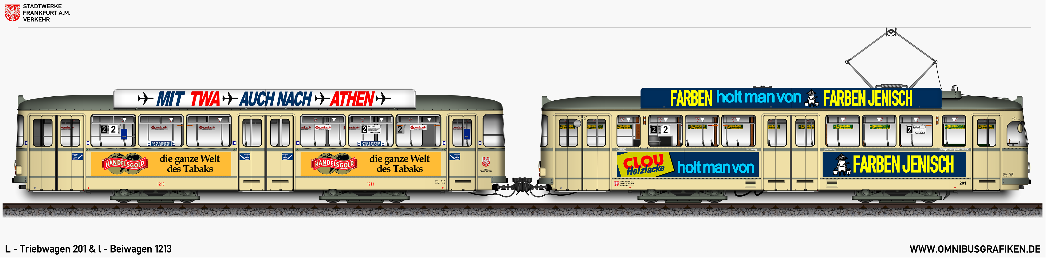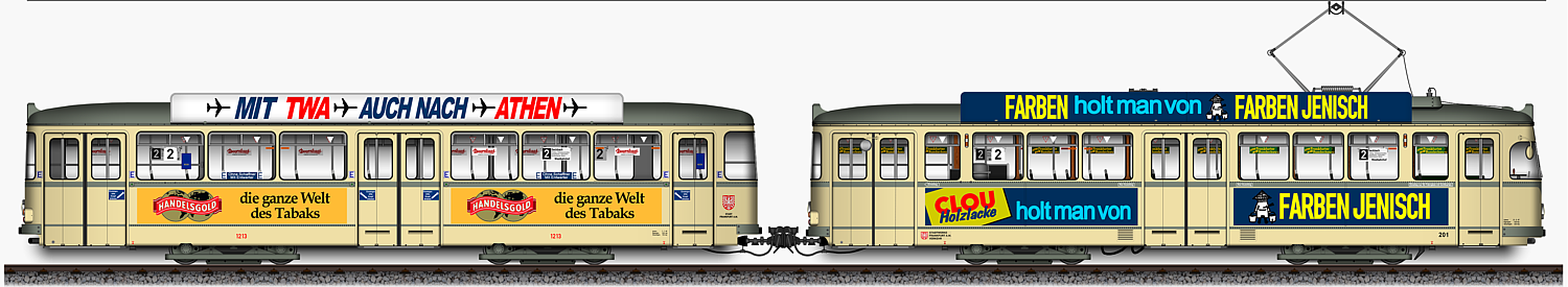 | Triebwagen 201 und Beiwagen 1213, Ansichten von 1970 | |