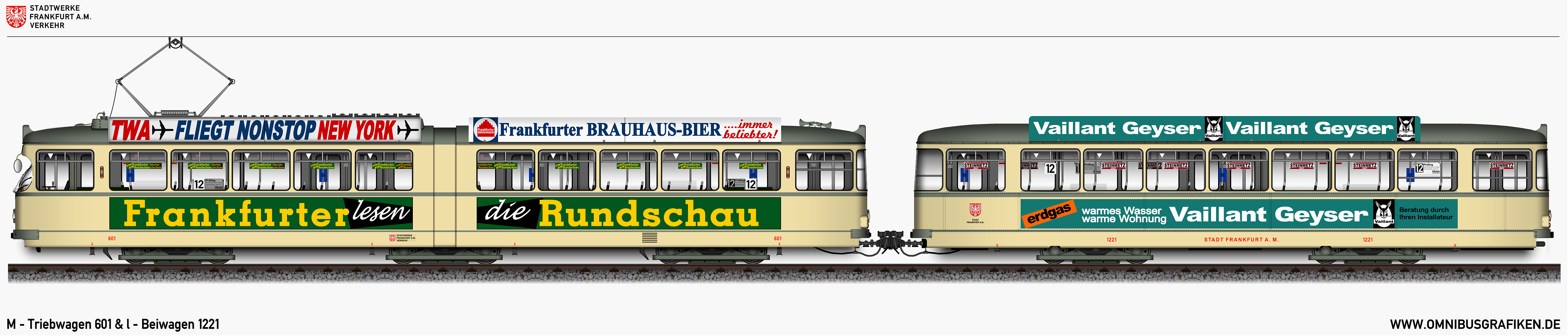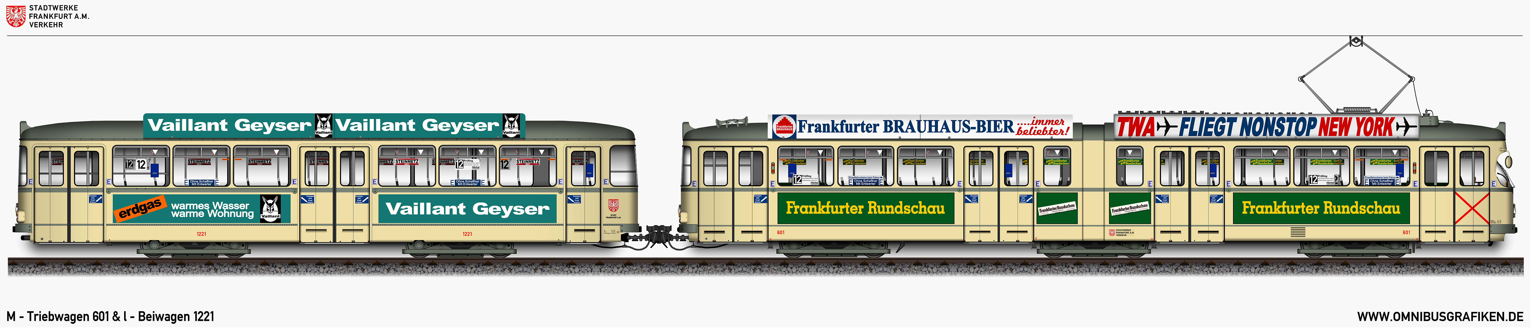 M - Triebwagen 601 und l - Beiwagen 1221, Ansichten von 1969 |