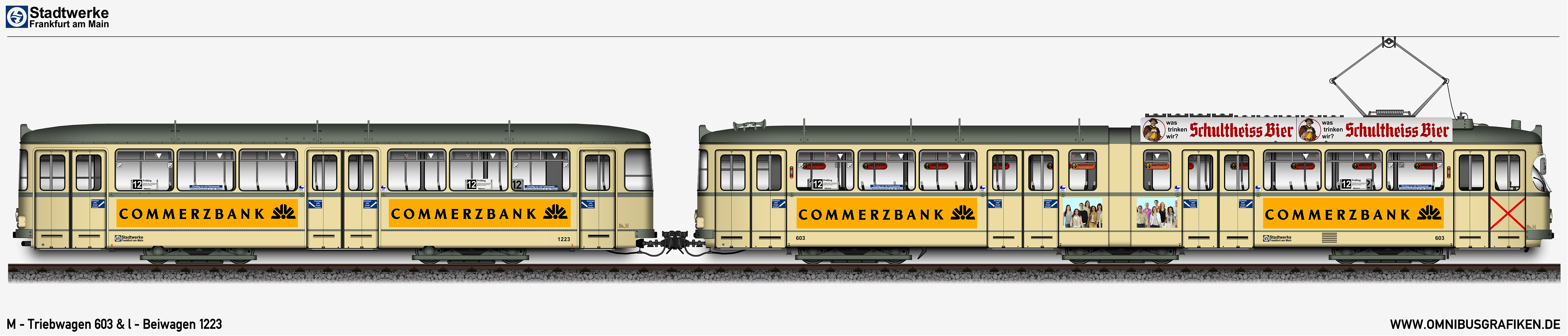 M - Triebwagen 603 und l - Beiwagen 1223, Ansichten von 1978 |