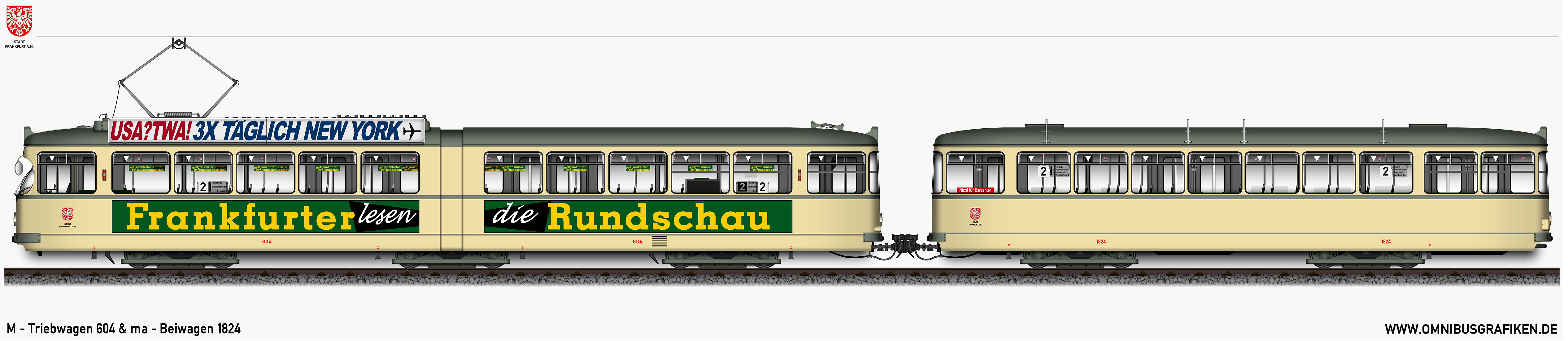 M - Triebwagen 604 und ma - Beiwagen 1824, Ansichten von 1966 |