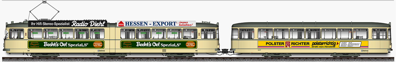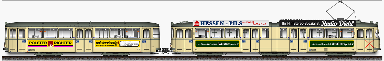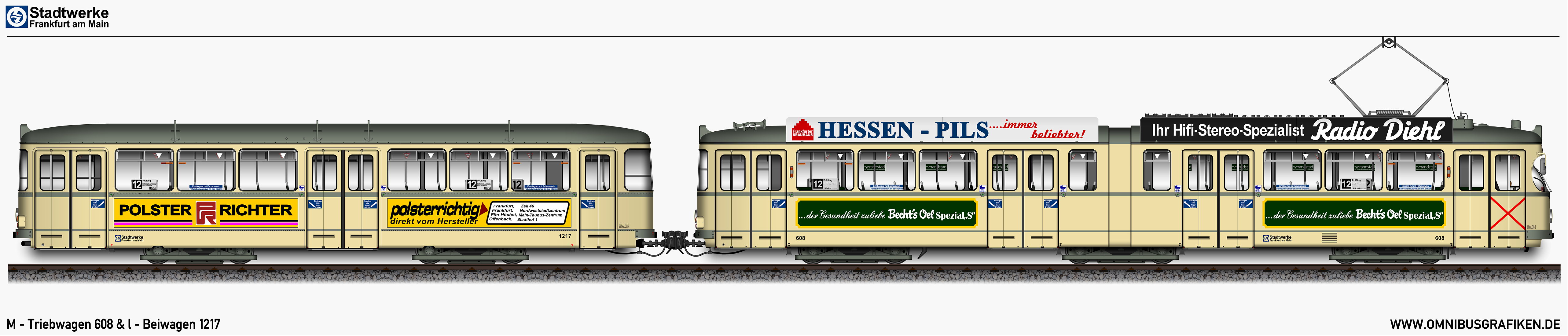 M - Triebwagen 608 und l - Beiwagen 1217, Ansichten von 1974 |