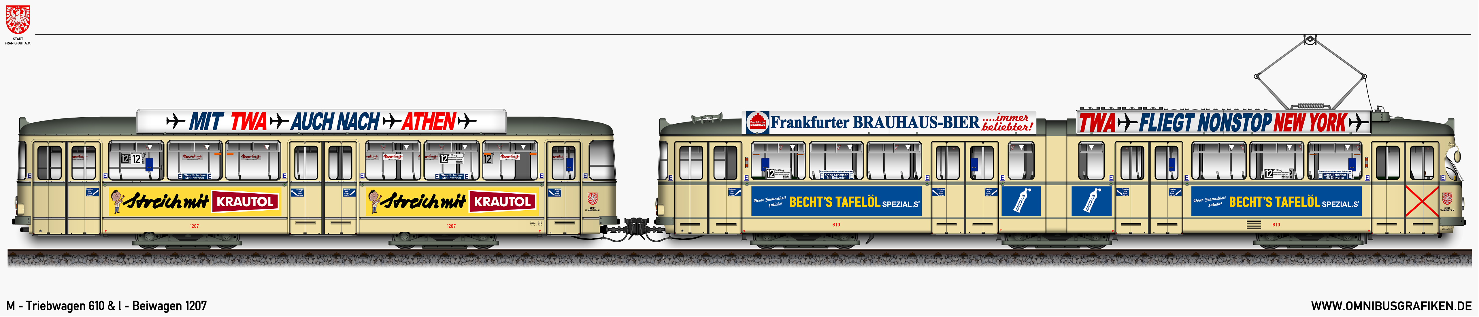 M - Triebwagen 610 und l - Beiwagen 1207, Ansichten von 1969 |