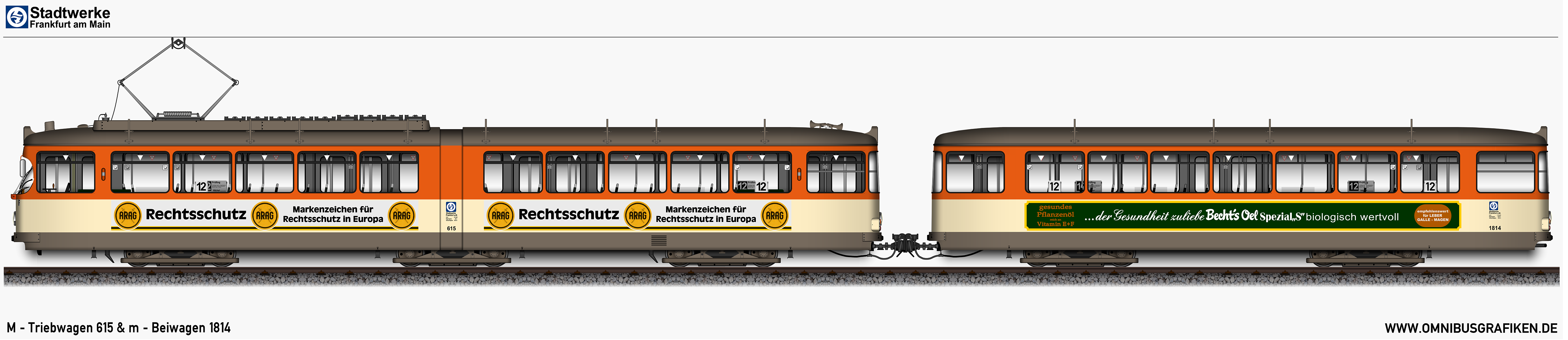 M - Triebwagen 615 und m - Beiwagen 1814, Ansichten von 1986 |