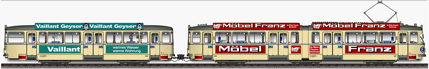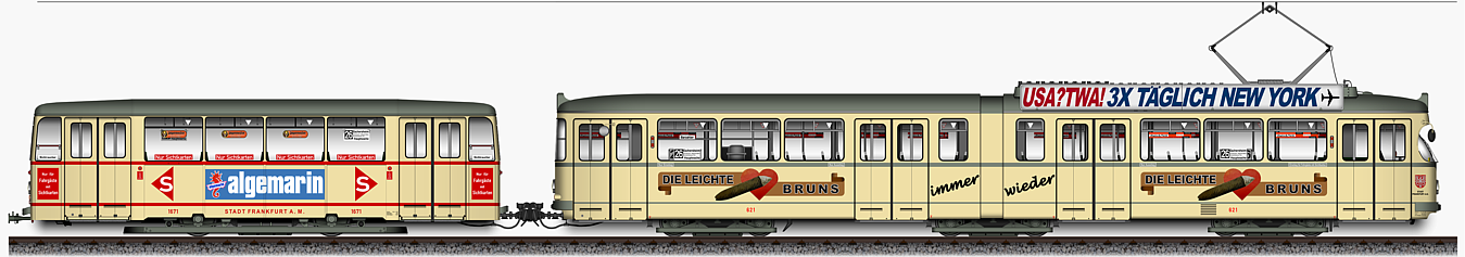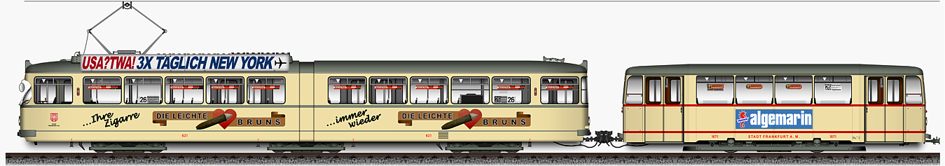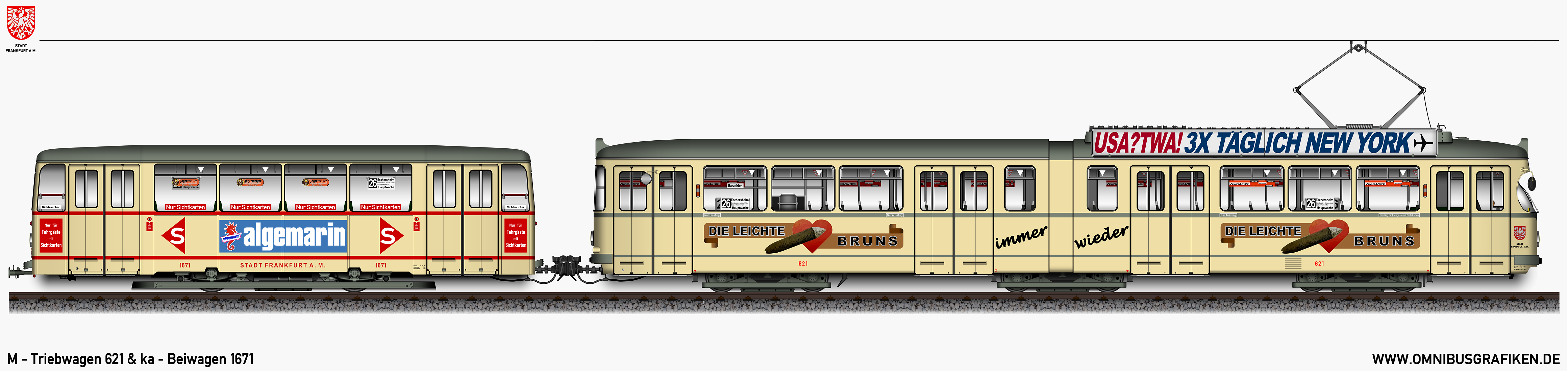 M - Triebwagen 621 und ka - Beiwagen 1671, Ansichten von 1965 |