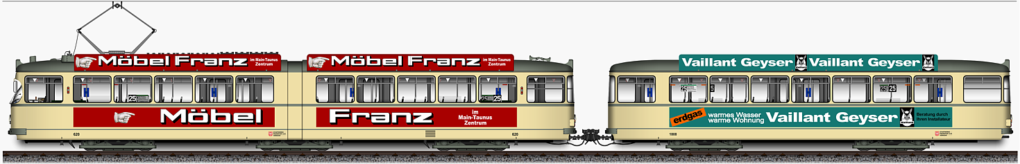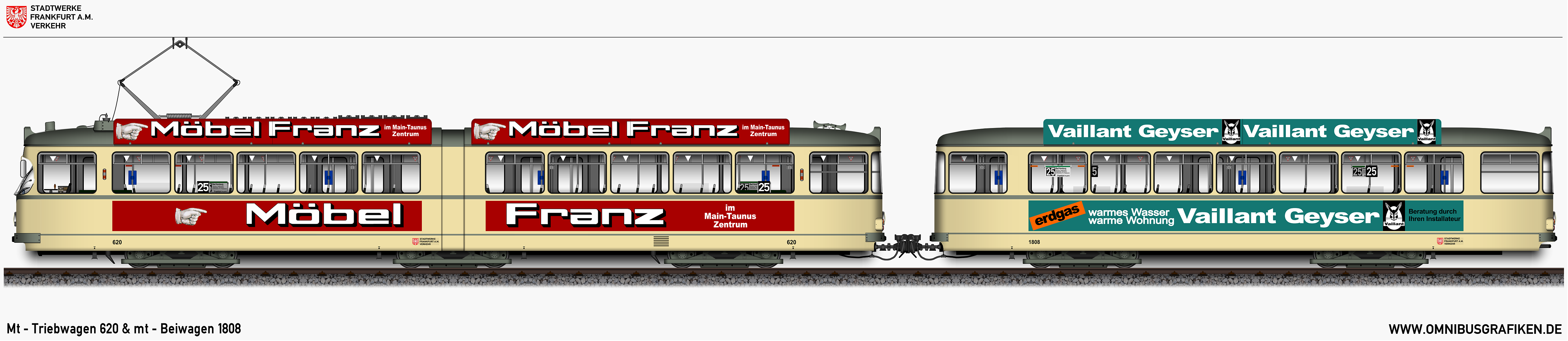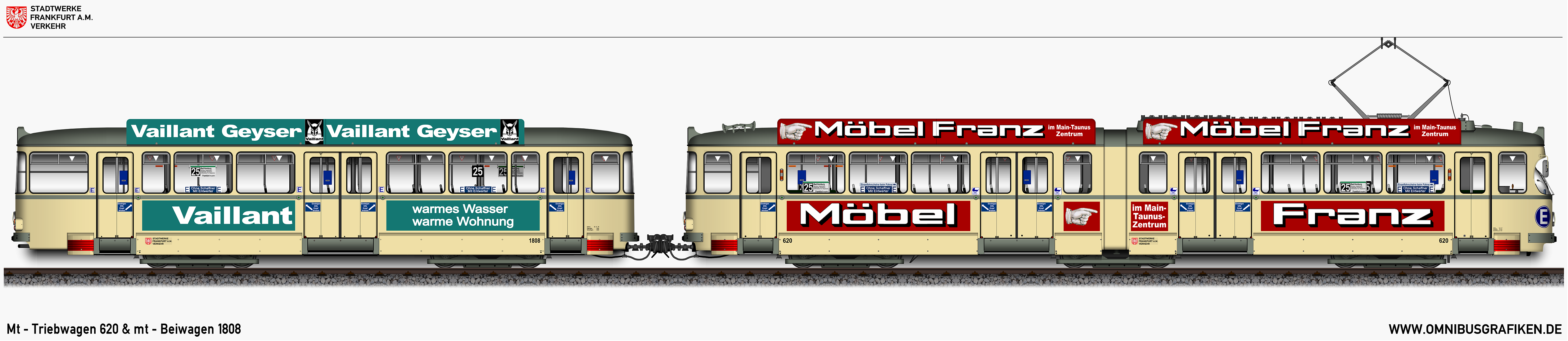 Mt - Triebwagen 620 und mt - Beiwagen 1808, Ansichten von 1970 |