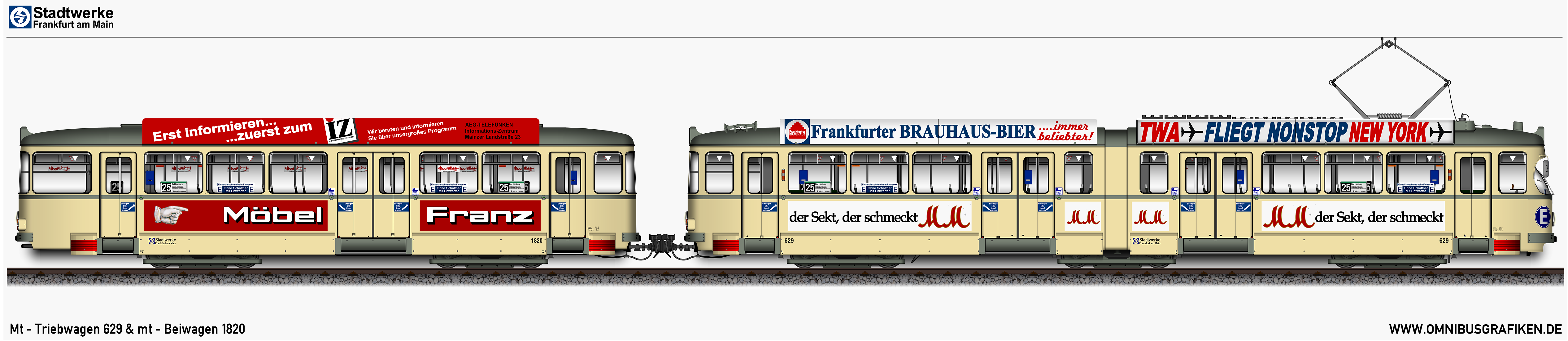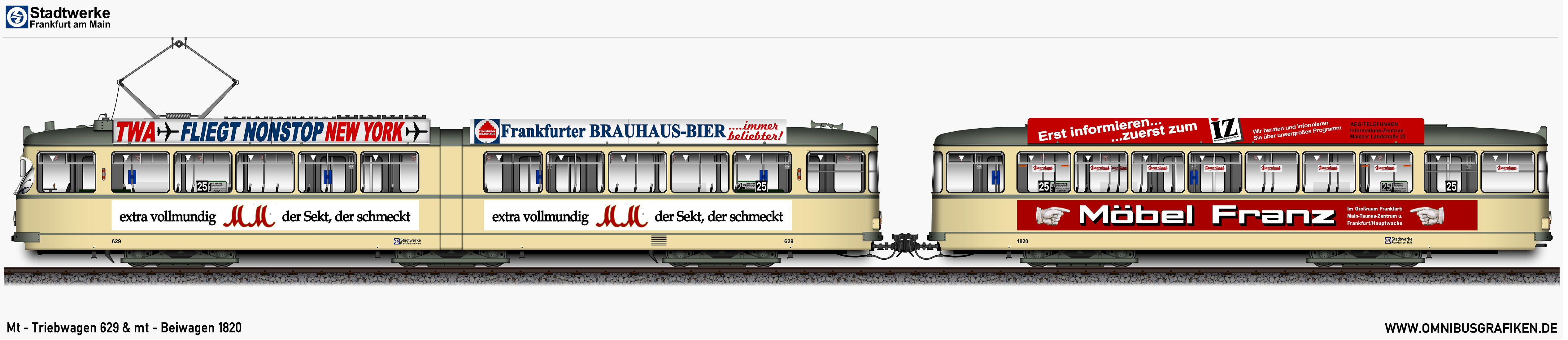 Mt - Triebwagen 629 und mt - Beiwagen 1820, Ansichten von 1971 |