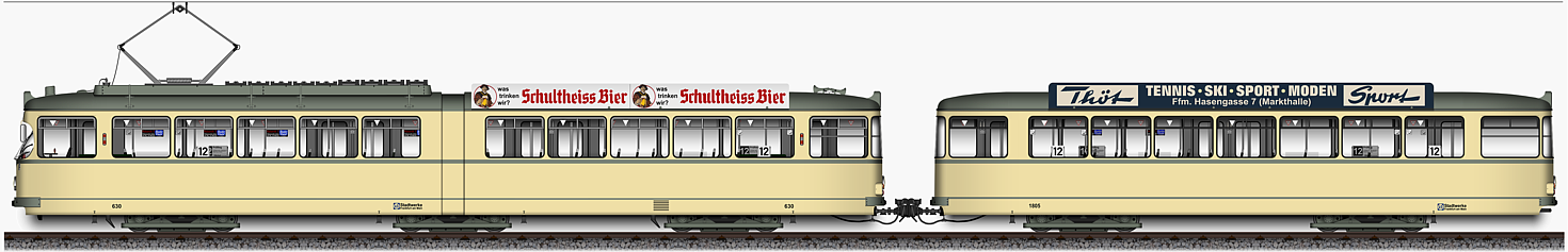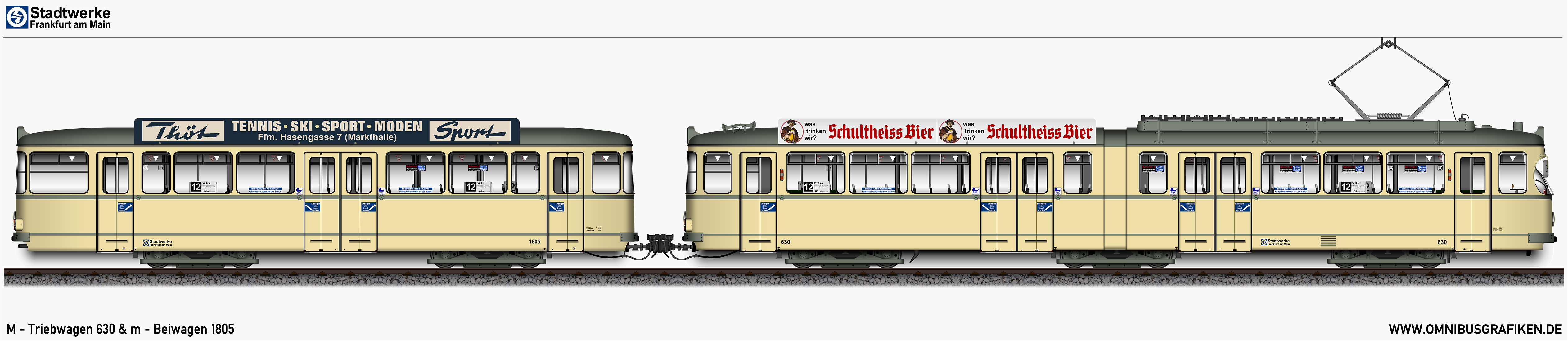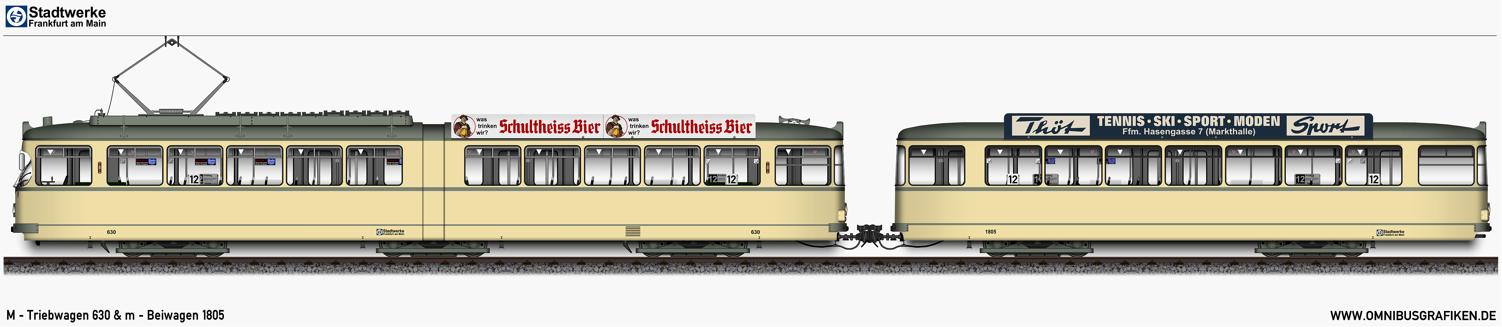 M - Triebwagen 630 und m - Beiwagen 1805, Ansichten von 1978 |