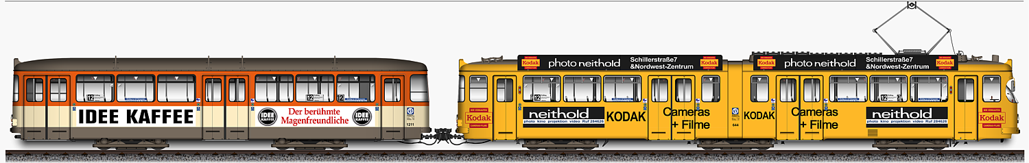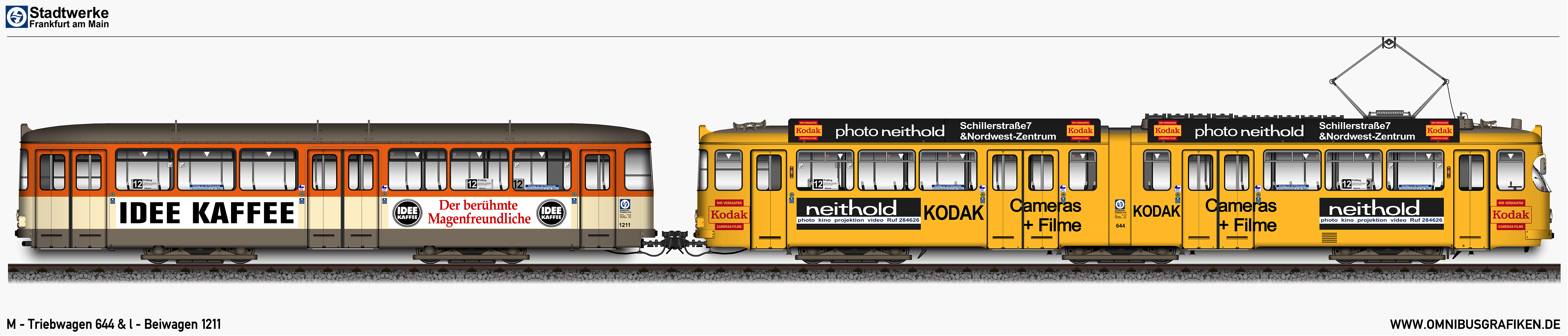 M - Triebwagen 644 und l - Beiwagen 1211, Ansichten von 1980 |