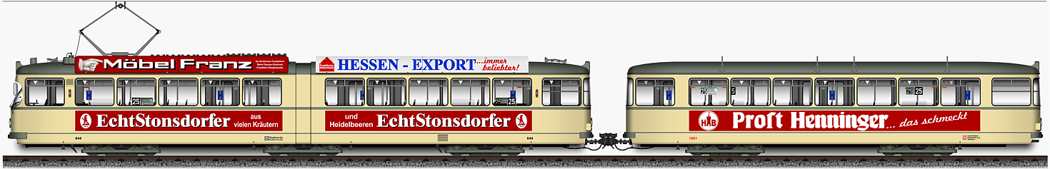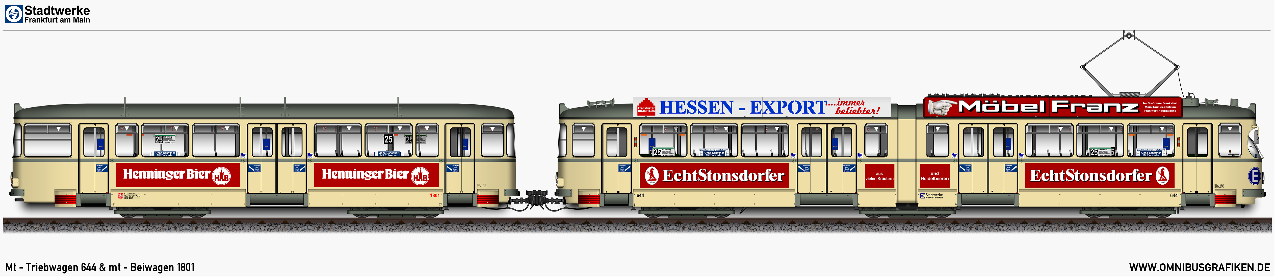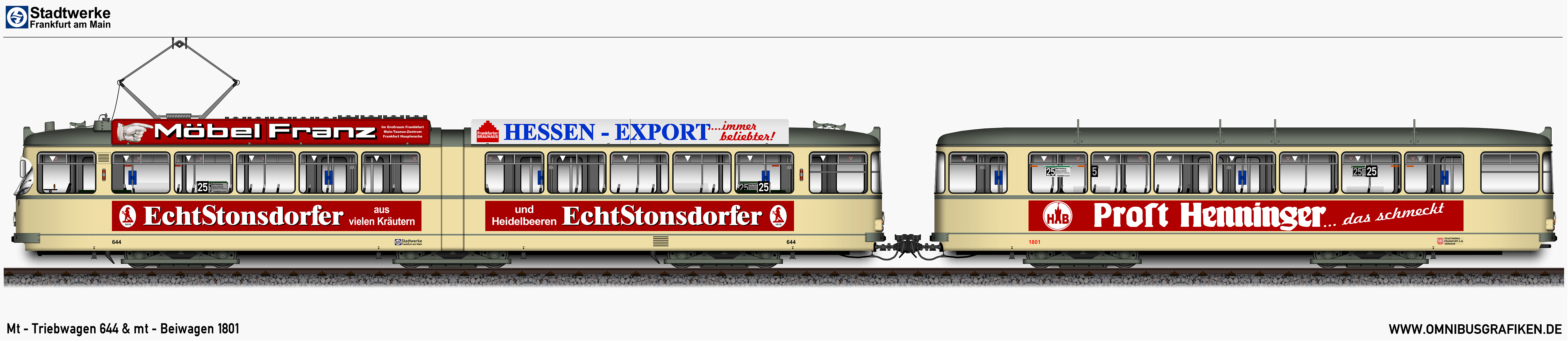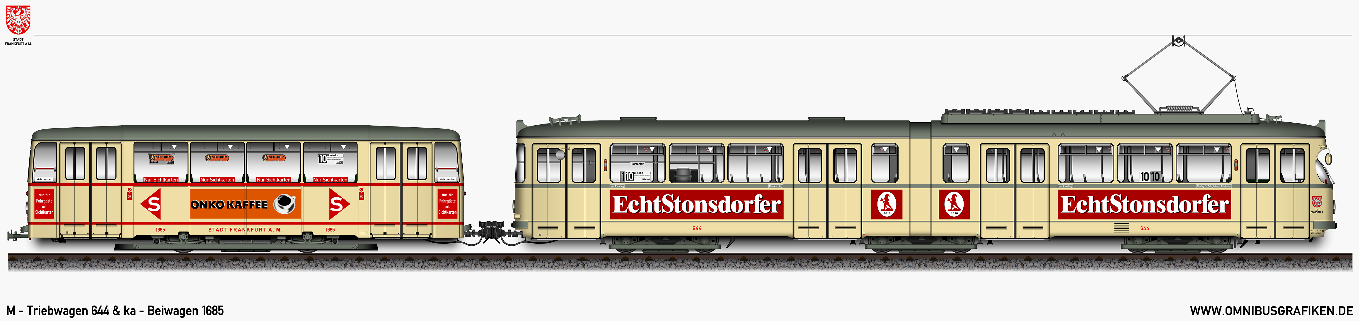 M - Triebwagen 644 und ka - Beiwagen 1685, Ansichten von 1964 |