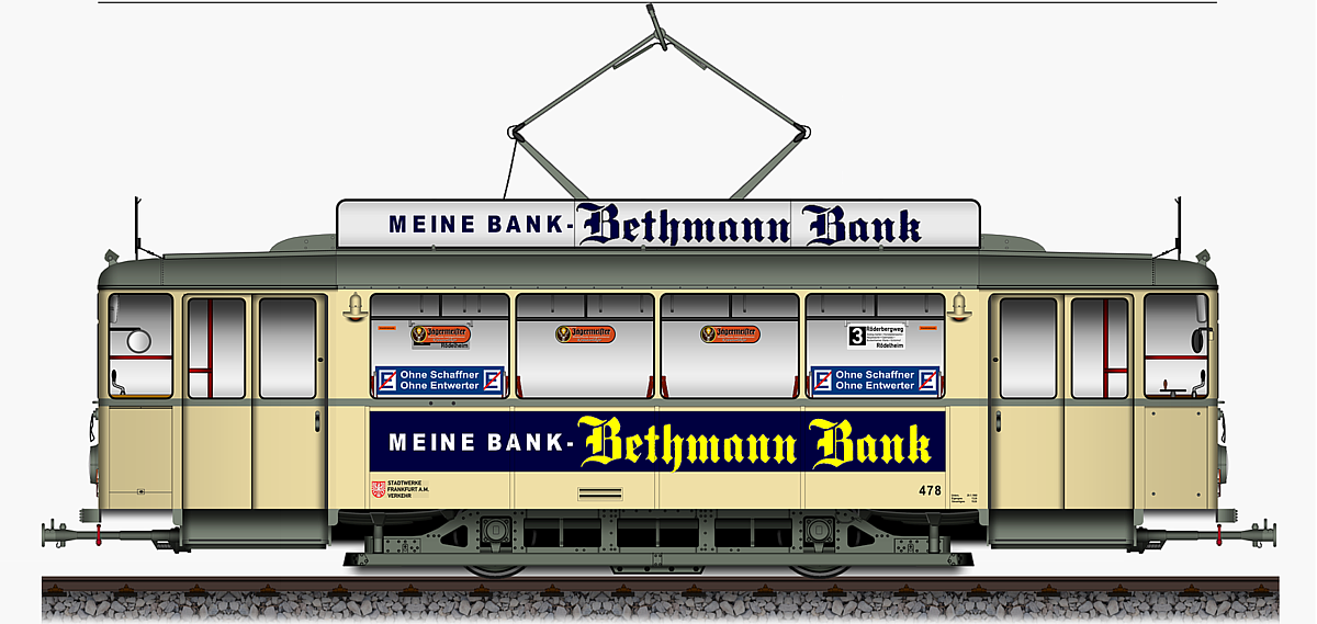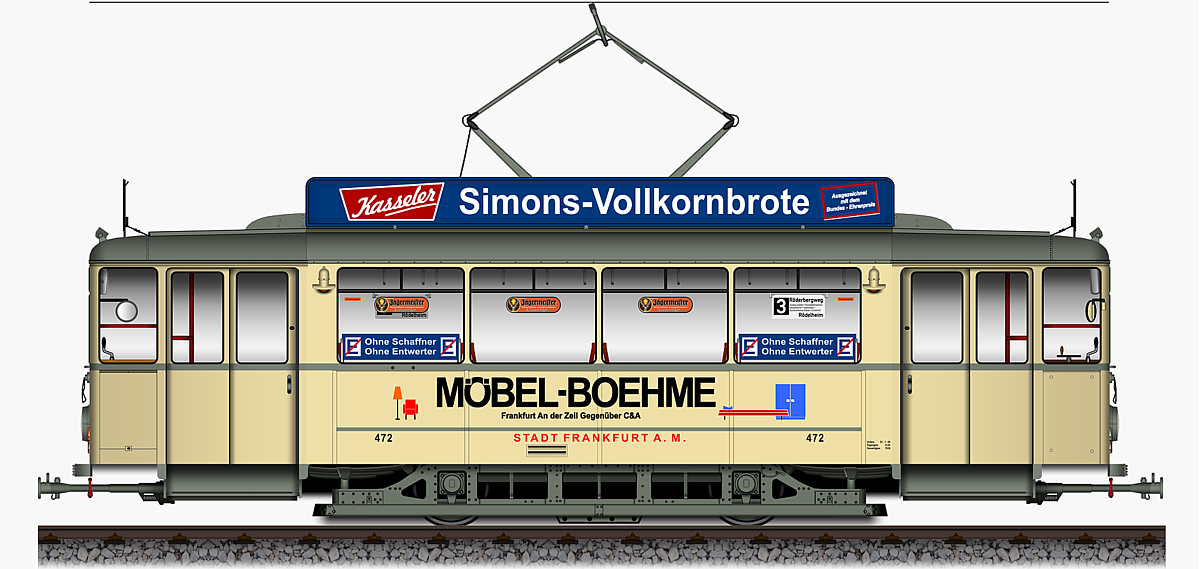 zweiachsigen Straßenbahnfahrzeuge, die in Frankfurt