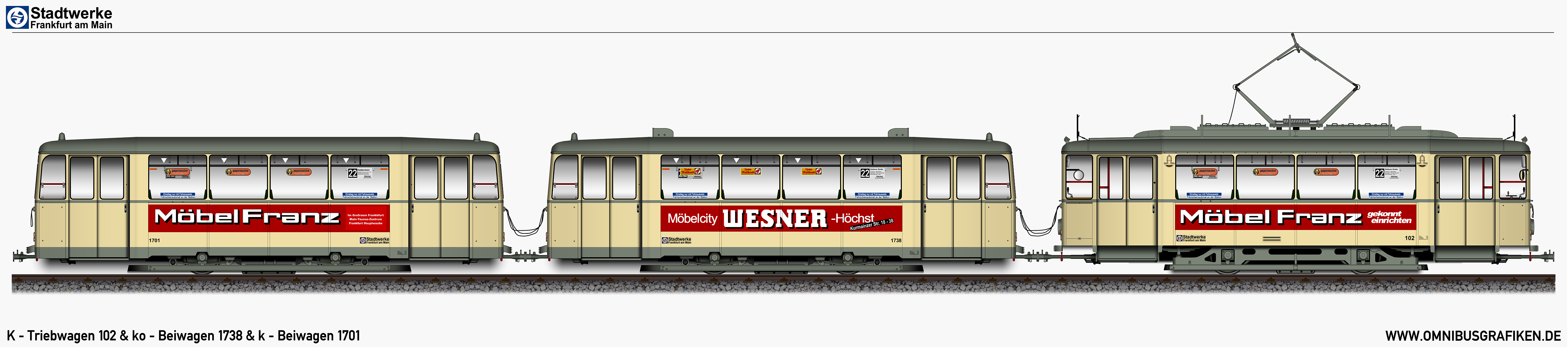 Beiwagen 1738 und k - Beiwagen 1701, Ansicht von 1974 |