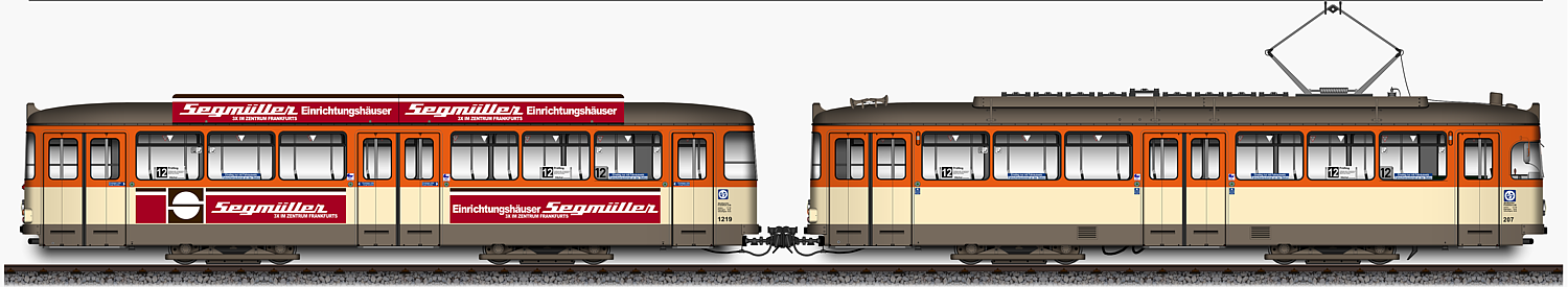 | Triebwagen 203 und Beiwagen 1219, Ansichten von 1975 | ||