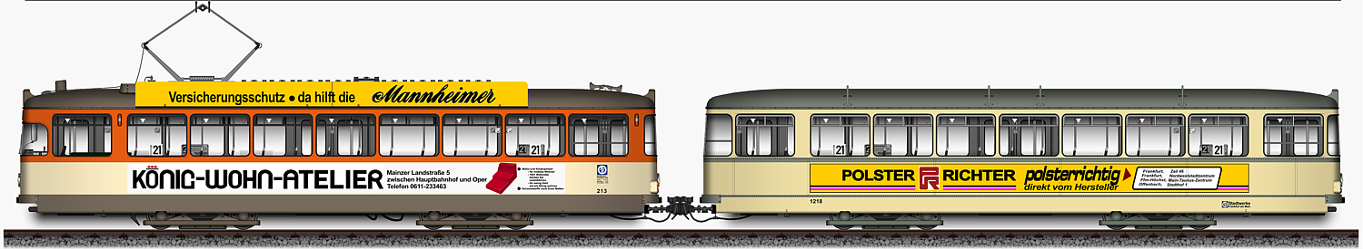 | Lv - Triebwagen 216 und lv - Beiwagen 1215, Ansichten von 1963 Taunusbahn Zug | ||
