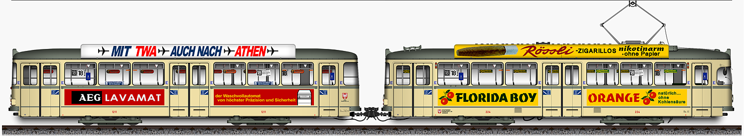 | Triebwagen 201 und Beiwagen 1201, Ansichten von 1963 | ||