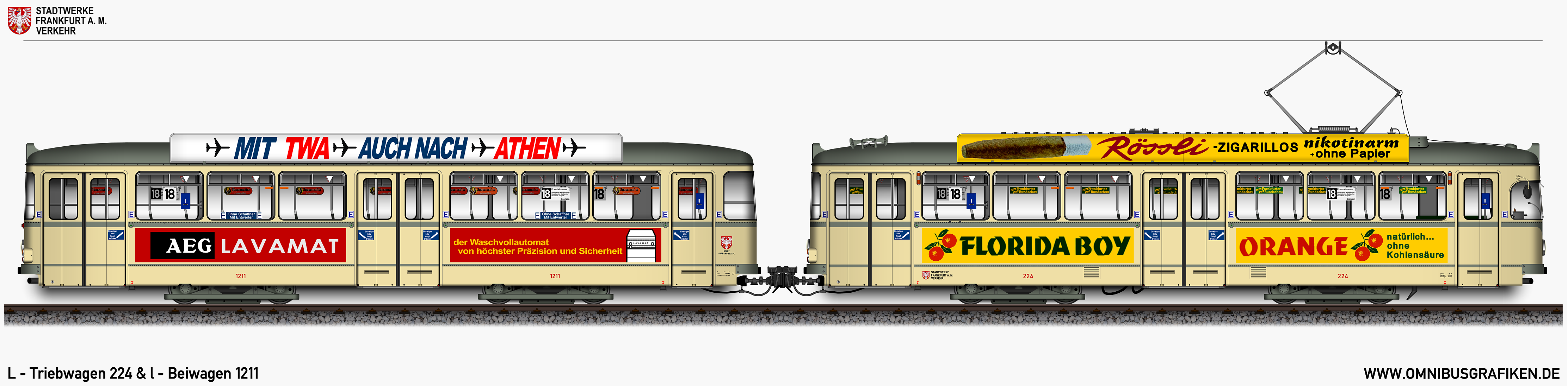 | L - Triebwagen 224 und l - Beiwagen 1206, Ansichten von 1969 | ||