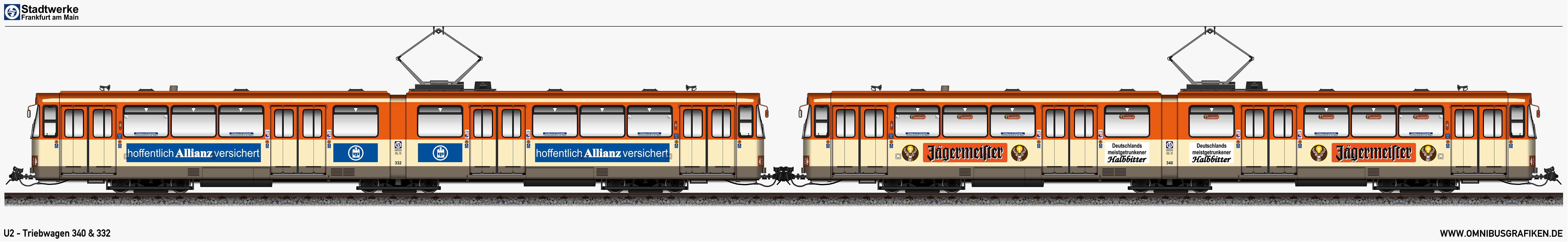 U2 - Triebwagen 340 und 332, Ansicht von 1994